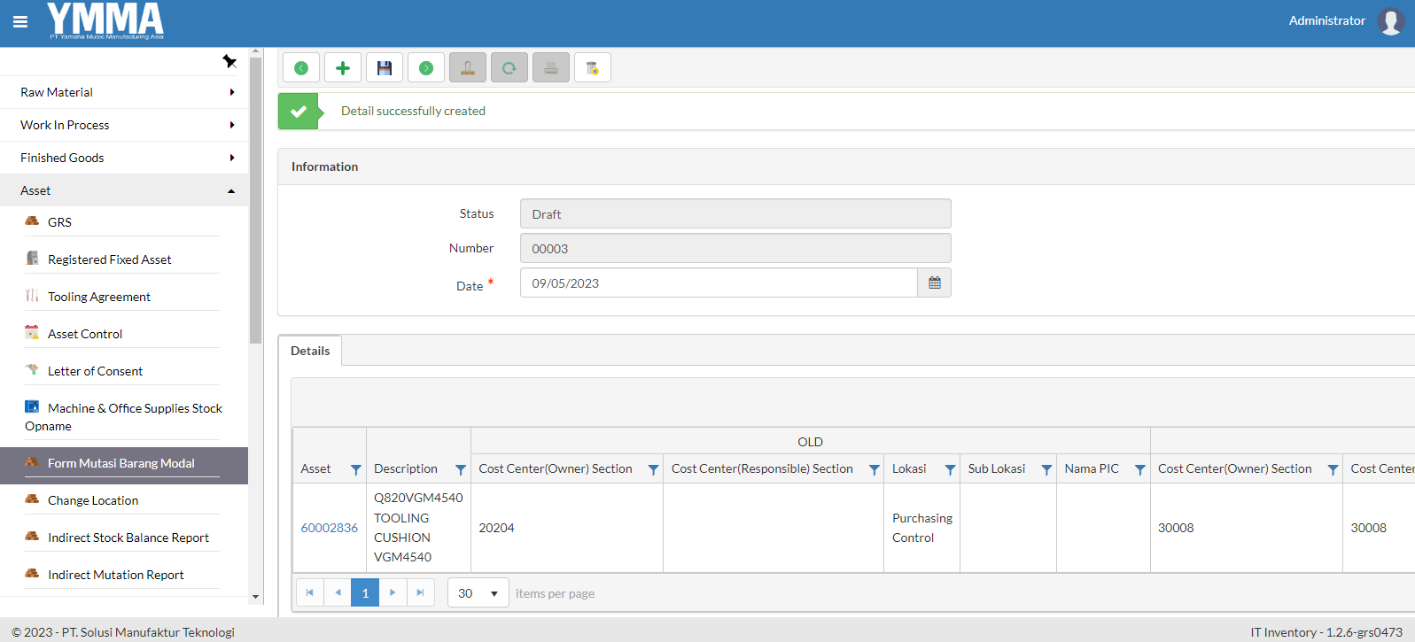 Kondisi saat ini sebelum seseorang melakukan pemindahan asset (secara internal ataupun eksternal) semua yang ingin melakukan mutasi tersebut harus membuat Formulir Mutasi Fixed Asset. Formulir tersebut nanti akan dibuat melalui CDMS, sekaligus menyimpan catatan dari masing - masing transaksi.